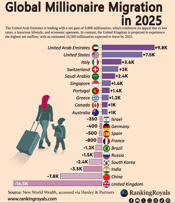 A similar dynamic played out in the United Kingdom. The abolition of the non-dom regime caused an exodus of 10,800 millionaires in a single year, making the country the world's largest net loss of wealthy residents in 2025. According to Henley & Partners, this is one of the reasons why London has fallen in the ranking of global wealth hubs. Incidentally, the aforementioned forecast of 16,500 departing millionaires (see below) turned out to be an overestimate.
